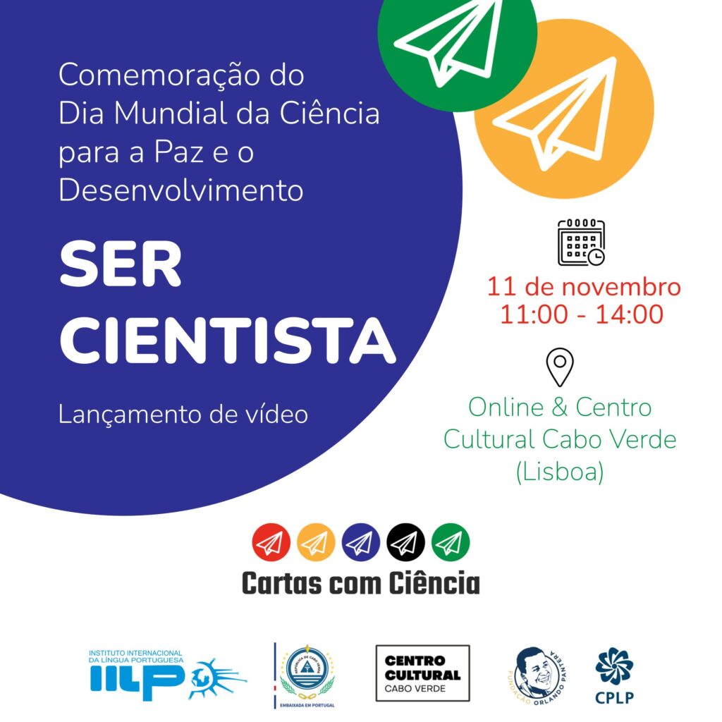 Dia 11 de novembro de 2024, a Cartas com Ciência vai comemorar o Dia Mundial da Ciência para a Paz e o Desenvolvimento com o lançamento de um vídeo sobre ser cientista. O evento será híbrido (online e no Centro Cultural de Cabo Verde em Lisboa) entre as 11:00 e as 12:45 (hora de Bissau, Lisboa e São Tomé) e conta com um programa que inclui, além do lançamento do vídeo, uma roda de conversa.