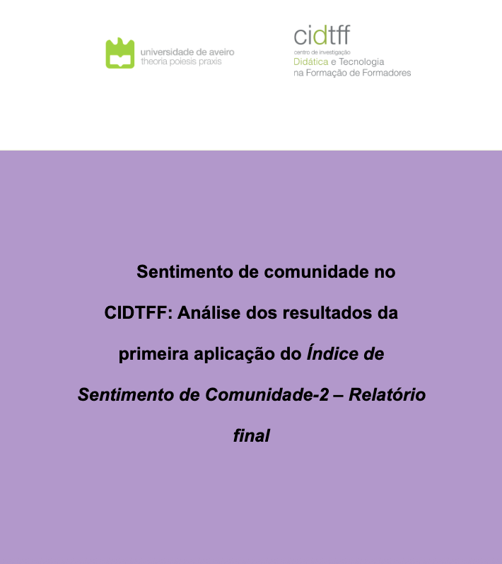 Parrança-da-Silva, F., Pinheiro, M. & Loureiro, M. J. (2025). Sentimento de Comunidade no CIDTFF: análise dos resultados da primeira aplicação do Índice de Sentimento de Comunidade-2: relatório final. Universidade de Aveiro. https://doi.org/10.48528/zwyd-4850