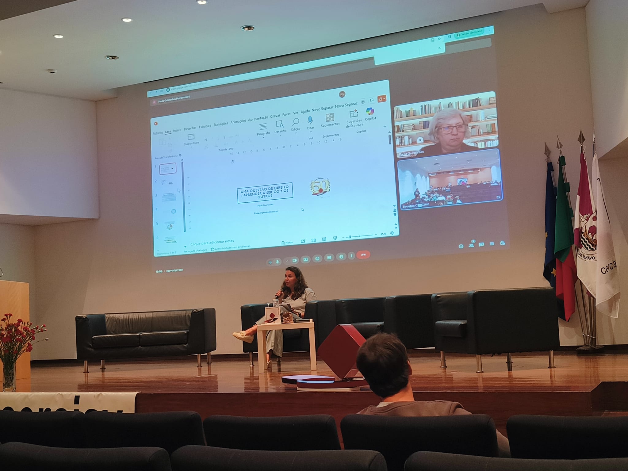 O painel contou com a participação online de Paula Guimarães, que trouxe uma reflexão centrada nos direitos, na inclusão e na importância de aprender em relação com os outros.