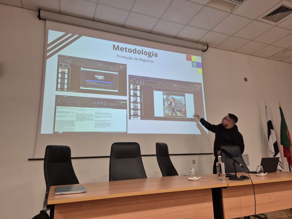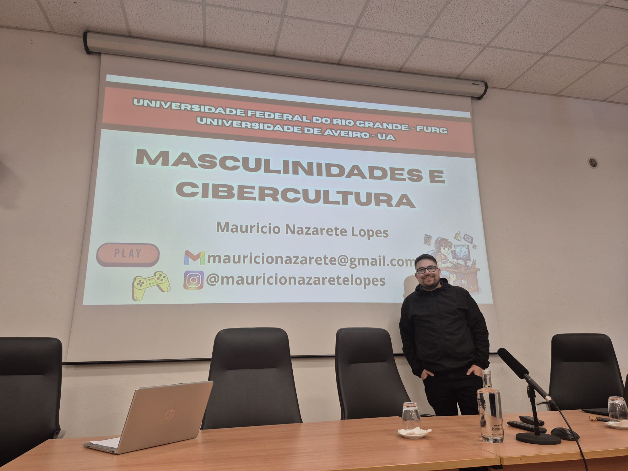 A palestra “Masculinidades e cibercultura” foi proferida por Maurício Lopes, estudante de doutoramento da FURG – Universidade Federal do Rio Grande (Brasil), atualmente em período sanduíche na Universidade de Aveiro, com orientação das investigadoras do CIDTFF Ana V. Rodrigues e Filomena Teixeira.
