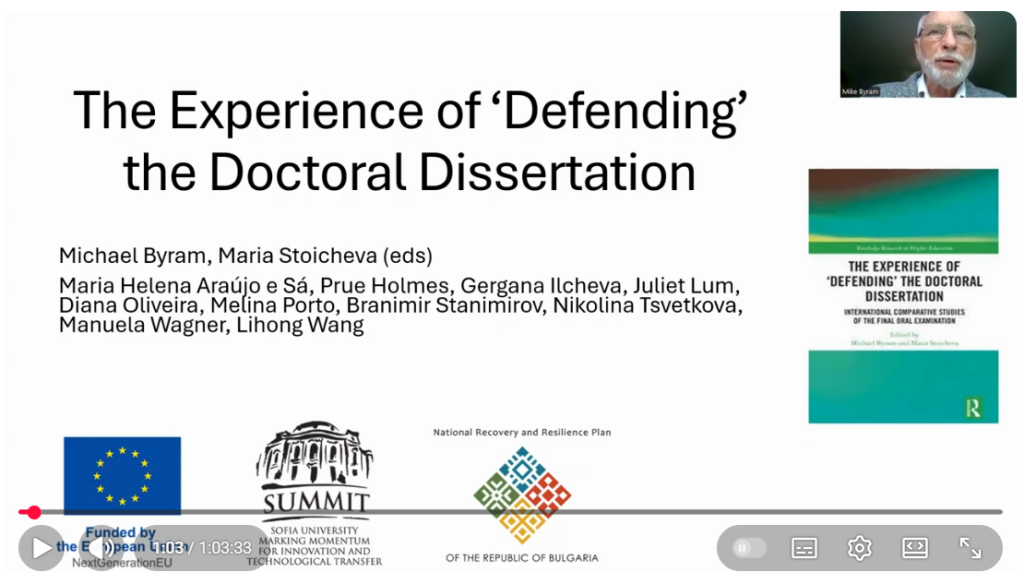A 5 de novembro, em formato online, realizou-se a apresentação do livro “The experience of ‘defending’ the doctoral dissertation”, na qual participaram as investigadoras do CIDTFF Helena Araújo e Sá e Diana Oliveira. A gravação do webinar encontra-se disponível para visualização no canal de YouTube da Universidade de Sofia e pode ser vista aqui.