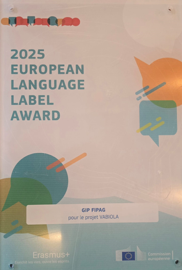 O projeto VaBioLa, no âmbito do qual foi desenvolvida a app Vabiola – uma versão modernizada do Portfólio Europeu das Línguas – foi premiado pela Agência ERASMUS+ de França com o Selo Europeu das Línguas 2025 na Categoria Ensino Escolar – “Valorizar as competências plurilingues dos alunos para formar cidadãos esclarecidos”. O prémio visa promover o desenvolvimento de iniciativas inovadoras no domínio do ensino e da aprendizagem linguística, dar a conhecer os resultados de projetos de excelência na área do plurilinguismo e despertar o interesse do grande público pela aprendizagem de línguas.